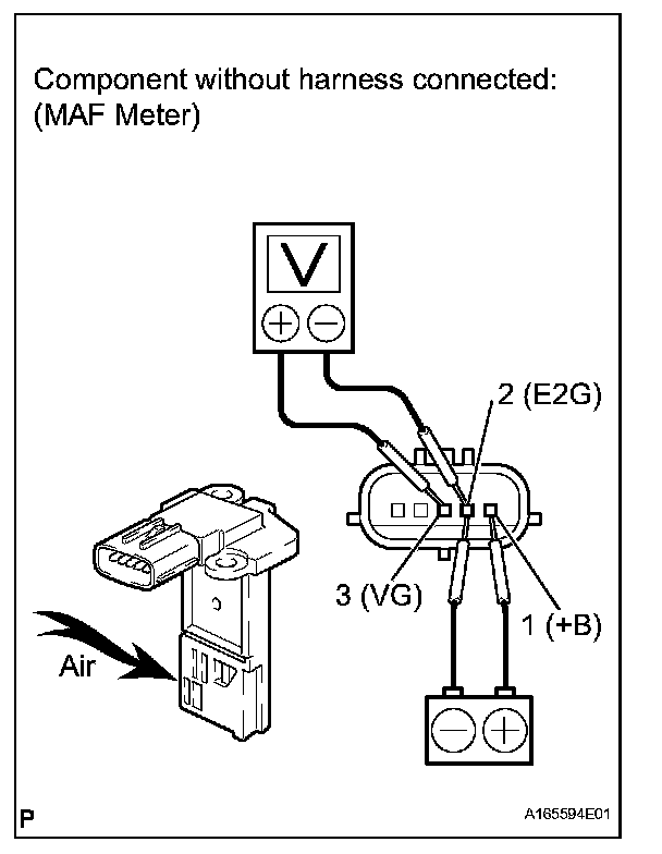 3. Blow air into the MAF meter, and check that the voltage fluctuates.