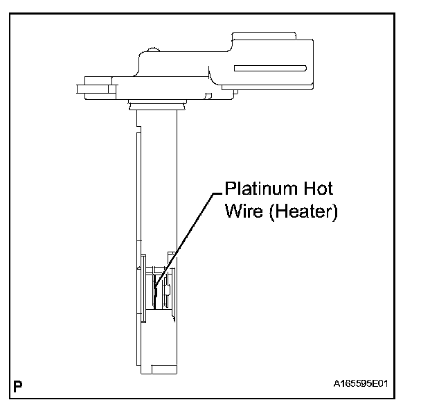 b. Perform a visual check for any foreign matter on the platinum hot wire (heater) of the mass air flow meter shown in the illustration.