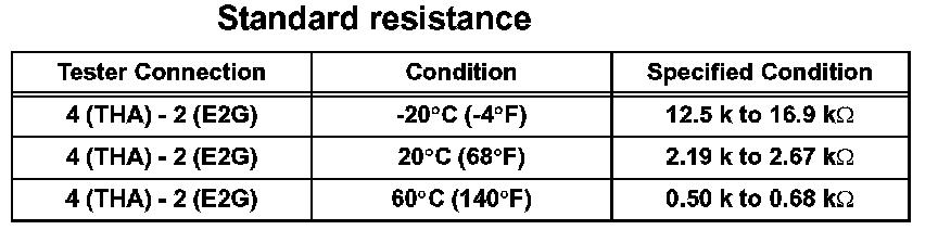 2. Using a voltmeter, connect the positive (+) tester probe to terminal 3 (VG), and negative (-) tester probe to terminal 2 (E2G).