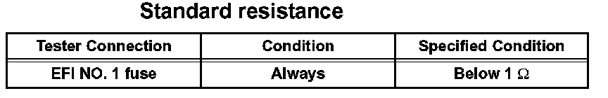 If the result is not as specified, replace the EFI No. 1 fuse.