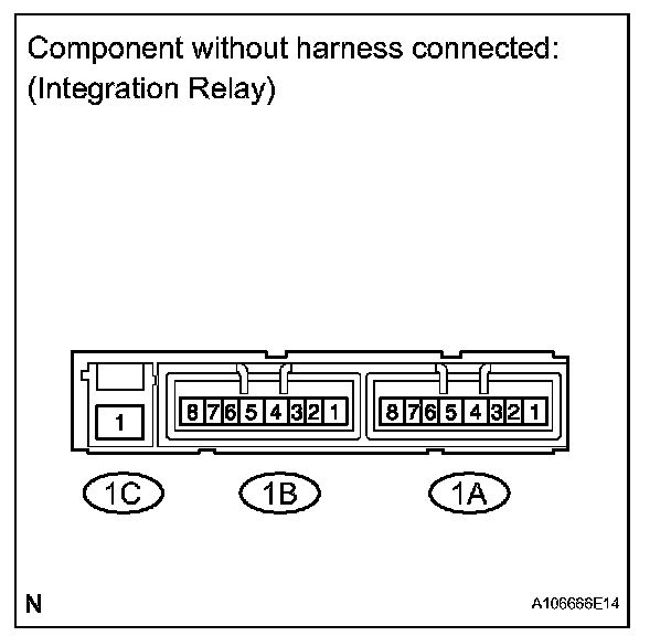 - The internal circuit of the integration relay is as shown in the illustration. Inspect the integration relay using the following procedures.