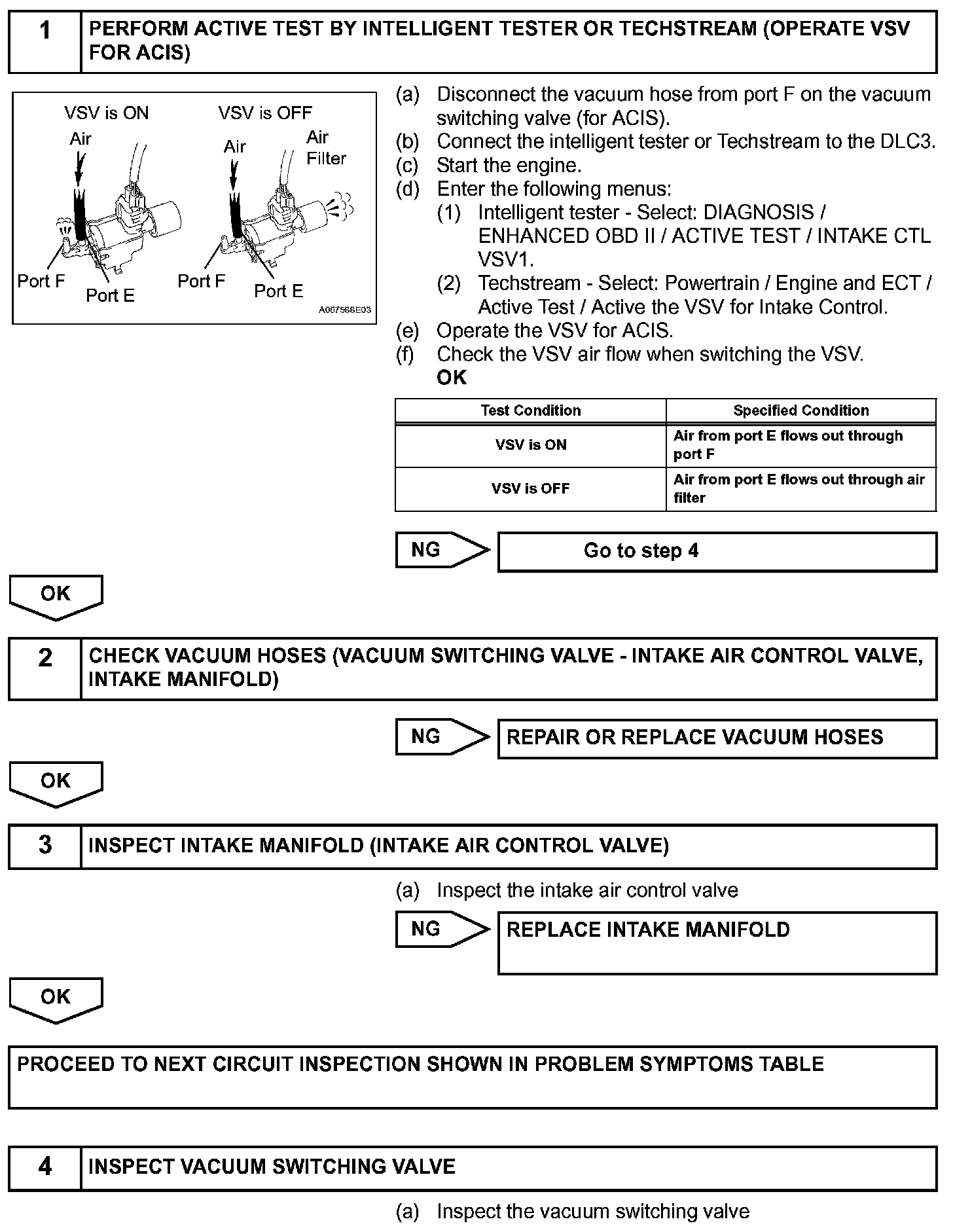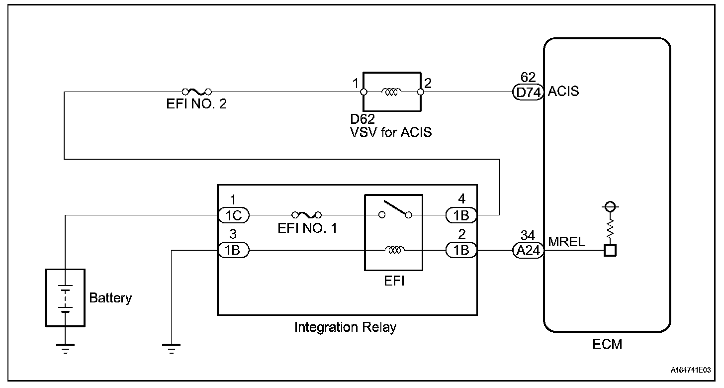 This circuit opens and closes the Intake Air Control Valve (IACV) in response to the engine load in order to increase the intake efficiency (ACIS: Acoustic Control Induction System).