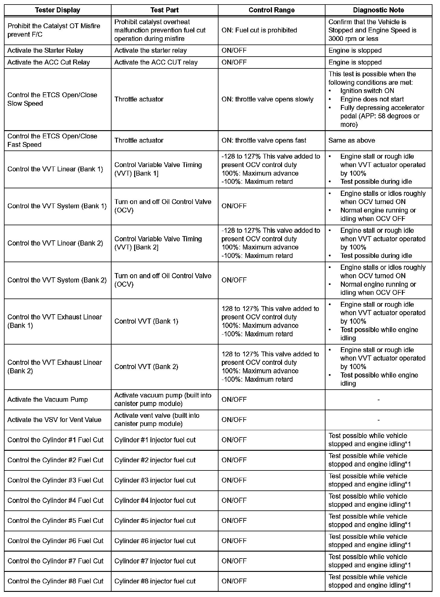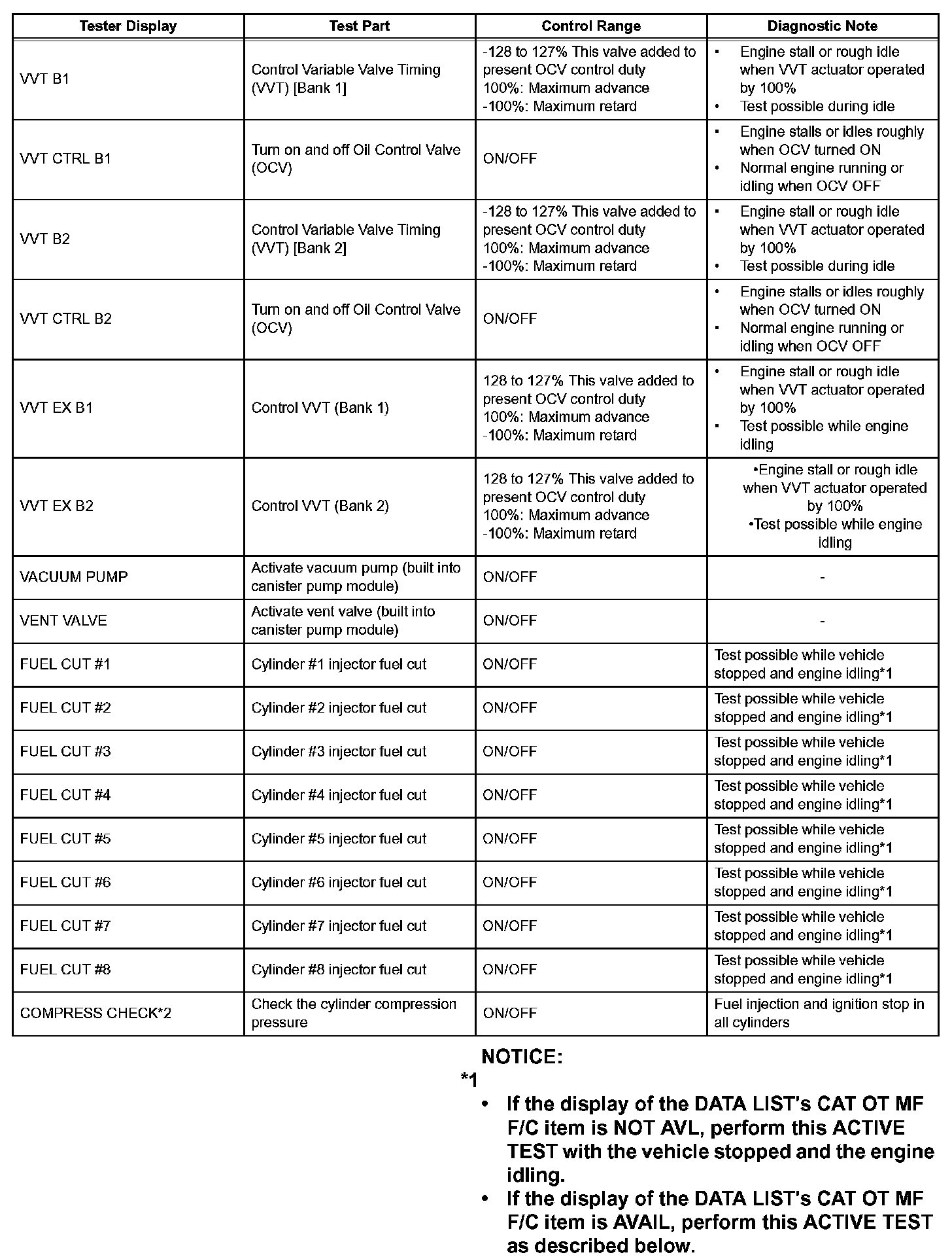 ACTIVE TESTHINT: Using the intelligent tester or Techstream to perform Active Tests allows relays, VSVs, actuators and other items to be operated without removing any parts. This non-intrusive functional inspection can be very useful because intermittent operation may be discovered before parts or wiring is disturbed. Performing Active Tests early in troubleshooting is one way to save diagnostic time. Data List information can be displayed while performing Active Tests.