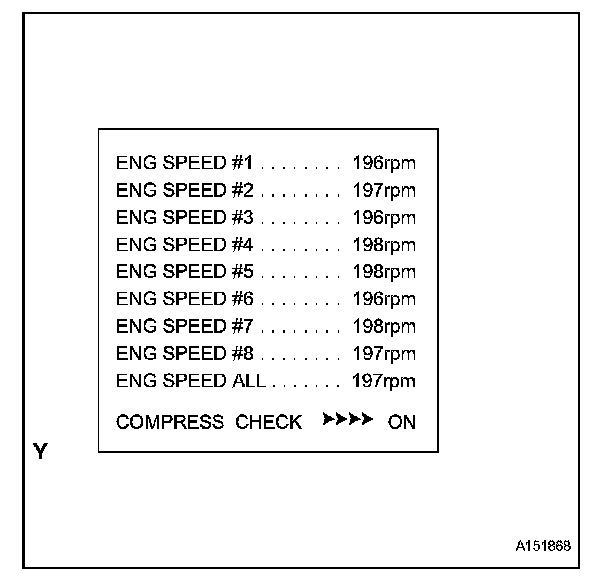 HINT: After performing the procedure, the ACTIVE TEST's COMPRESS CHECK will start. Fuel injection for all cylinders is prohibited, and each cylinder's engine rpm measurement will enter standby mode.
