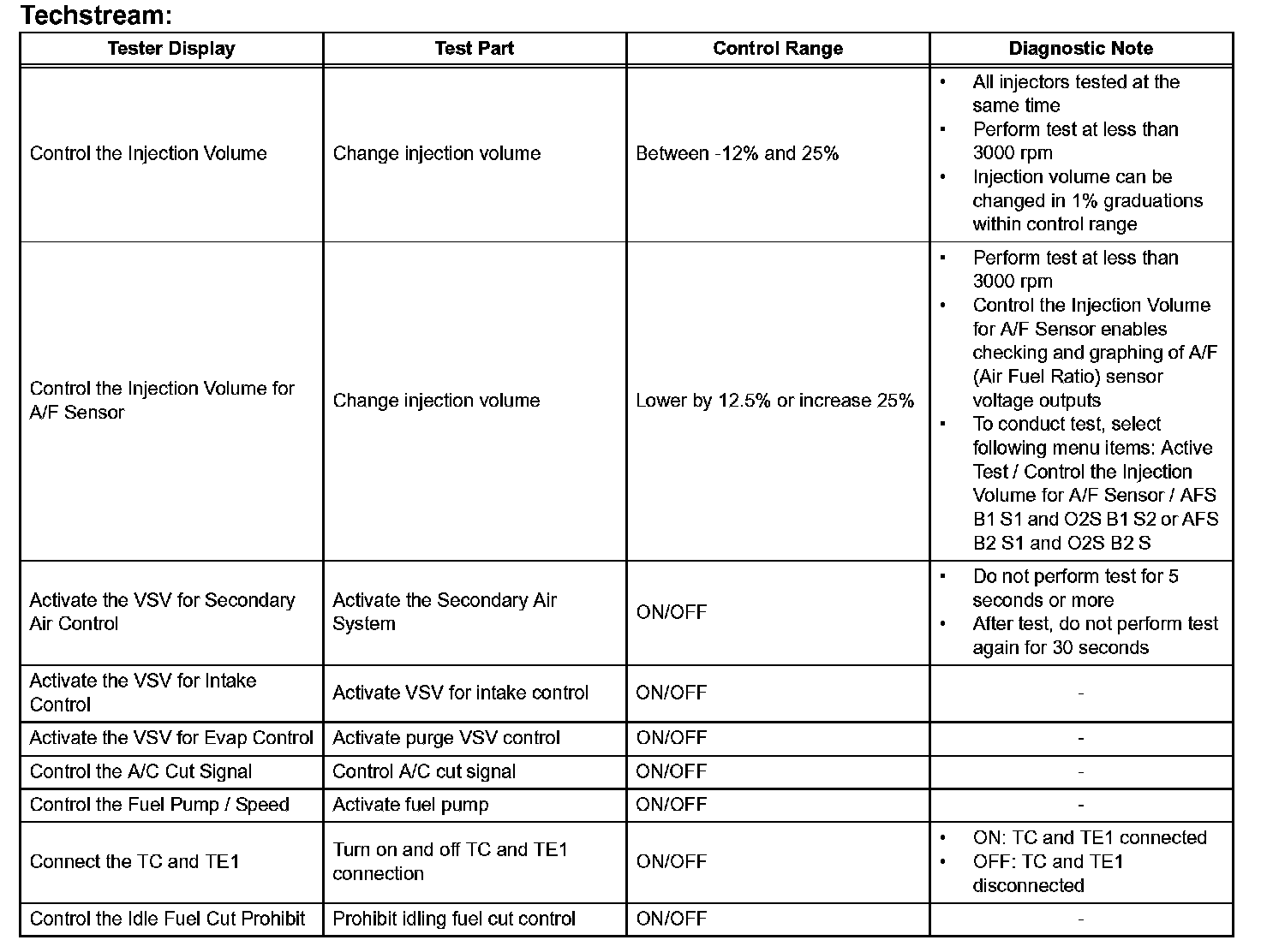 2. Techstream - Select: Powertrain / Engine and ECT / Active Test.