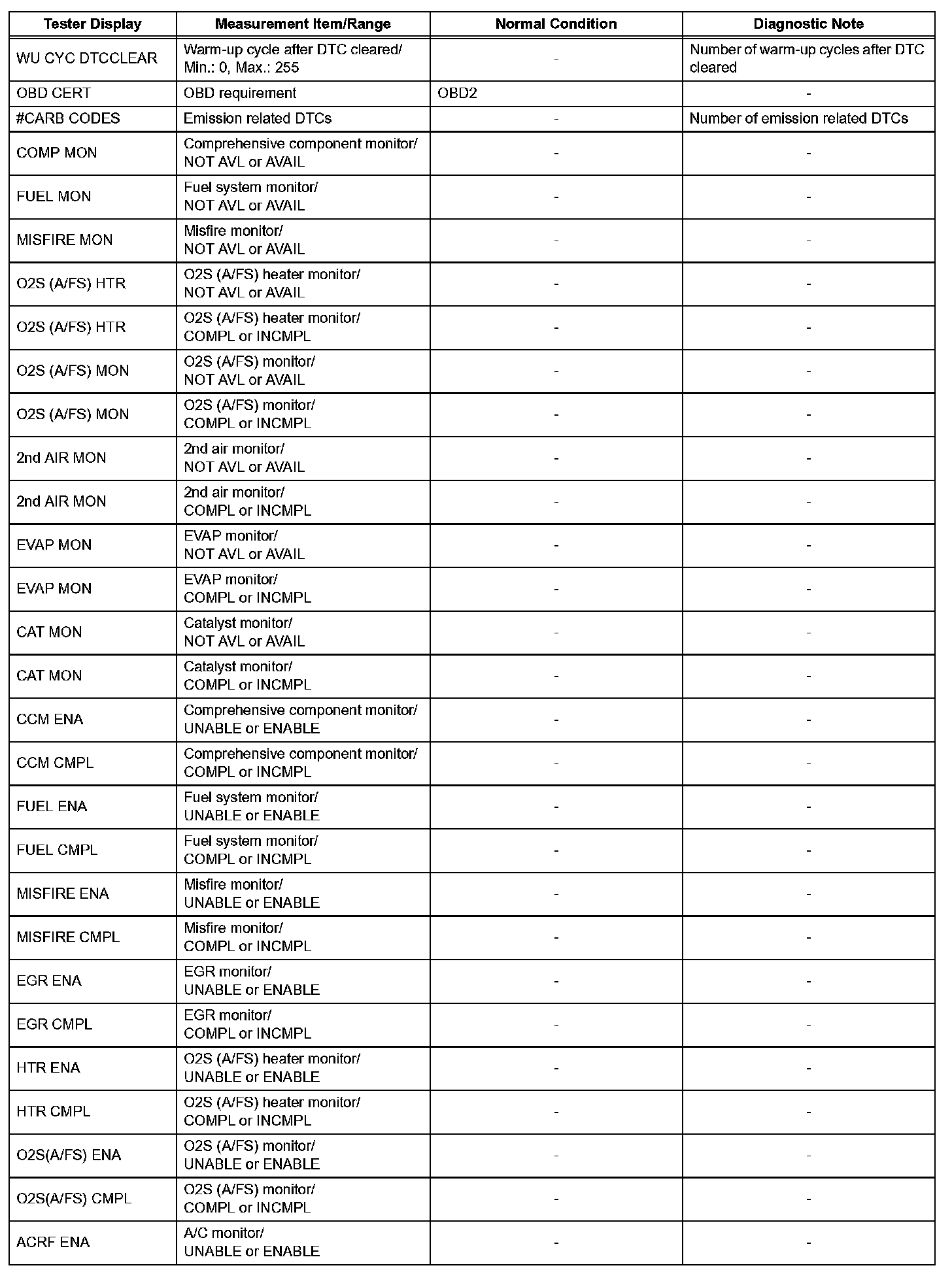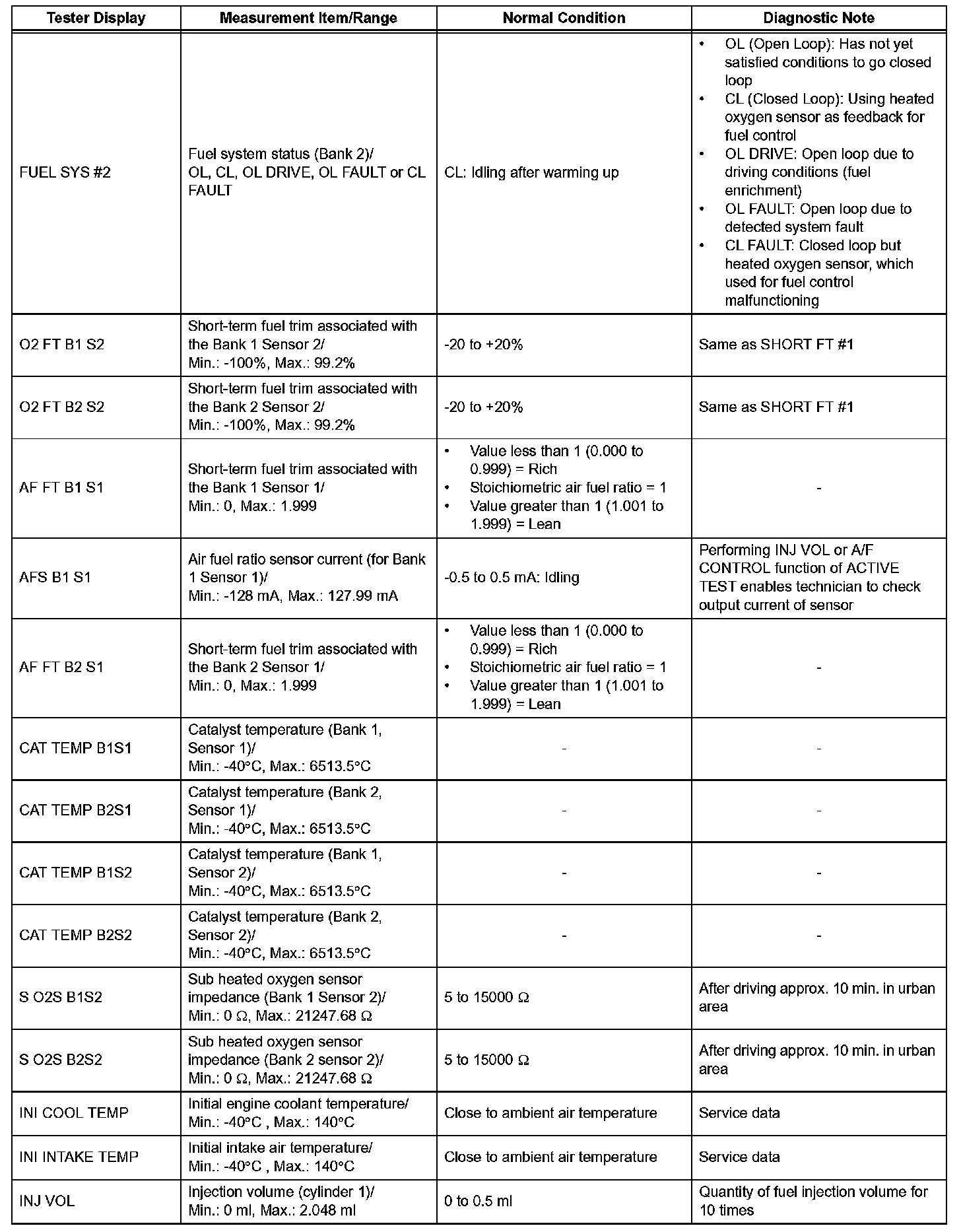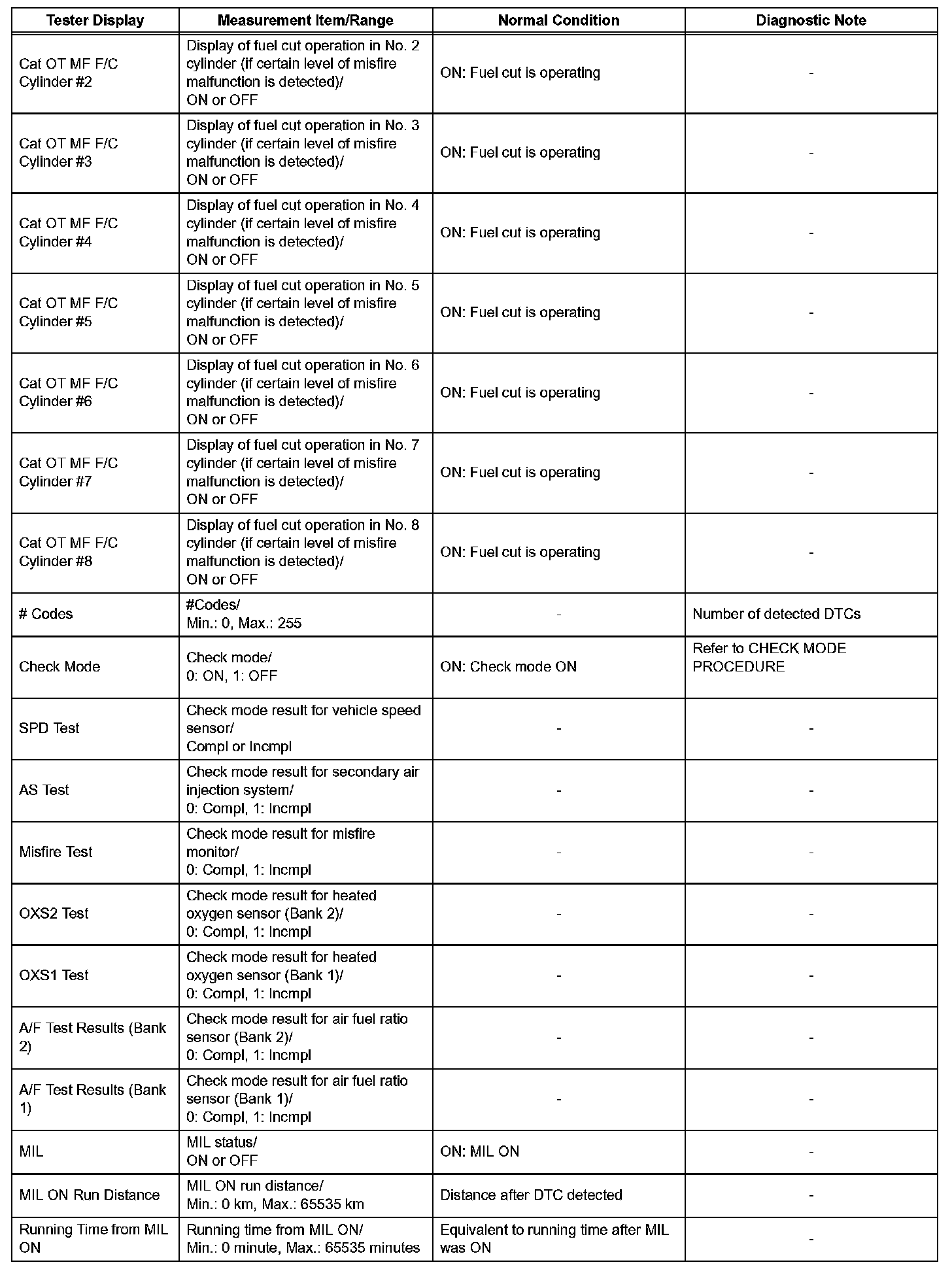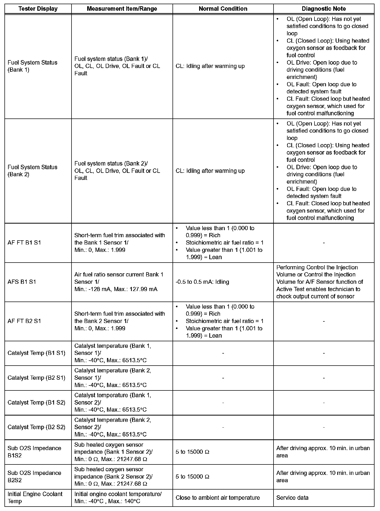 DATA LISTHINT: Using the intelligent tester or Techstream to read the Data List allows the values or states of switches, sensors, actuators and other items to be read without removing any parts. This non-intrusive inspection can be very useful because intermittent conditions or signals may be discovered before parts or wiring is disturbed. Reading the Data List information early in troubleshooting is one way to save diagnostic time.