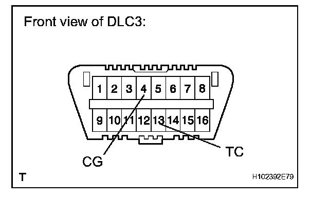 (2) Using SST, connect terminals 13 (TC) and 4 (CG) of the DLC3.