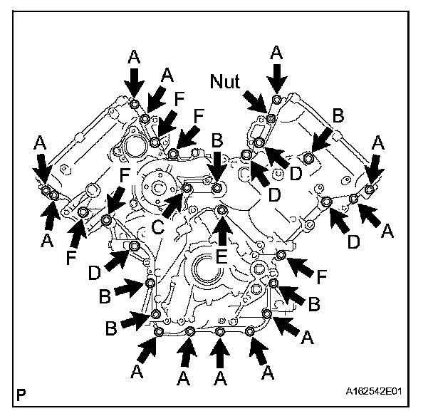 Temporarily install the timing chain cover with the 28 bolts and nut.