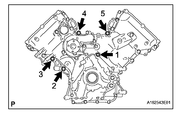 Step 1: Tighten the 5 bolts in several steps in the sequence shown in the illustration.