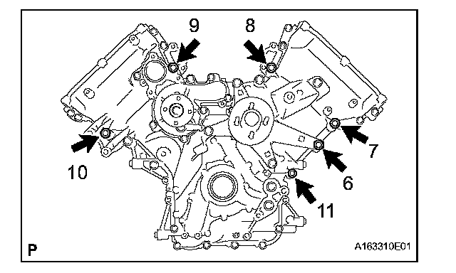 Step 2: Tighten the 6 bolts labeled 6 to 11 in several steps in the sequence shown in the illustration.