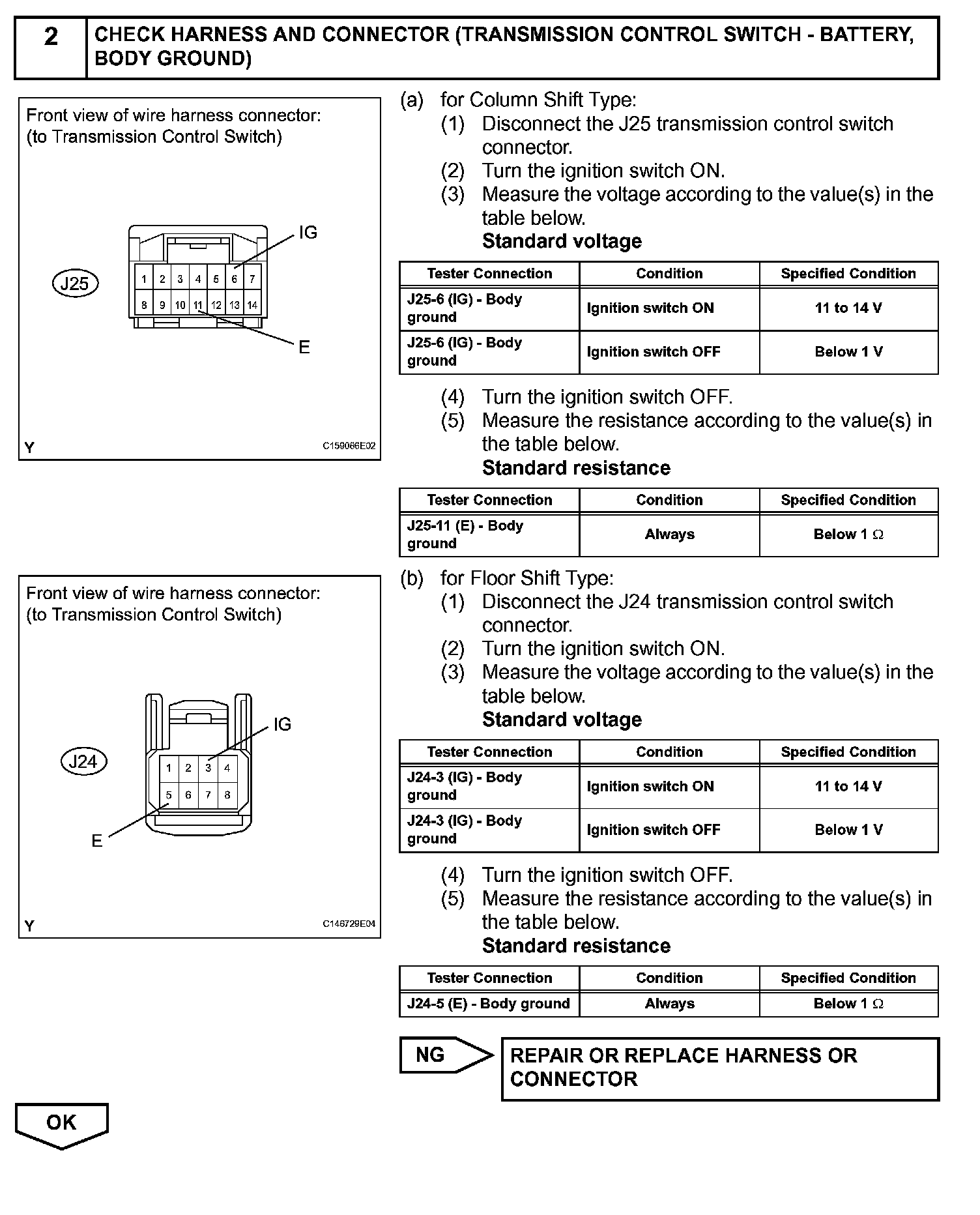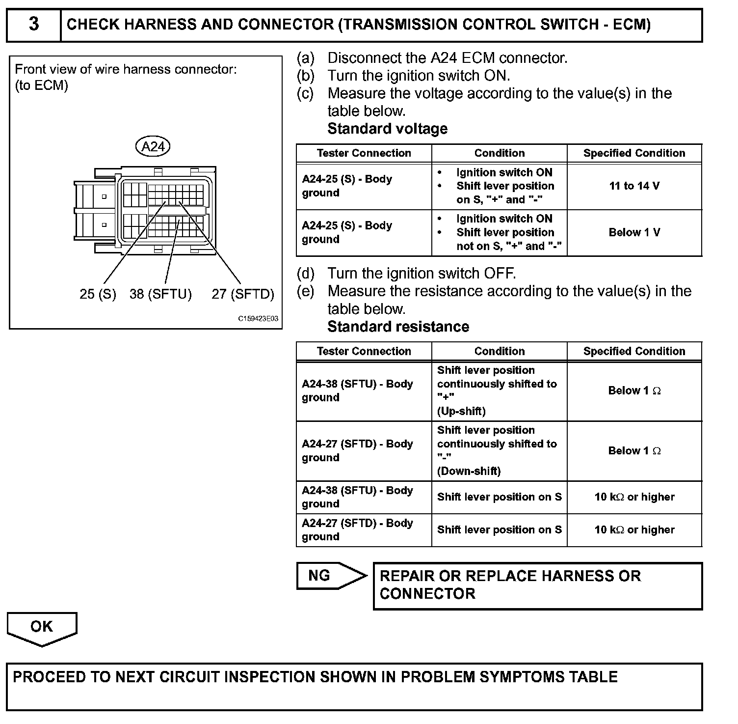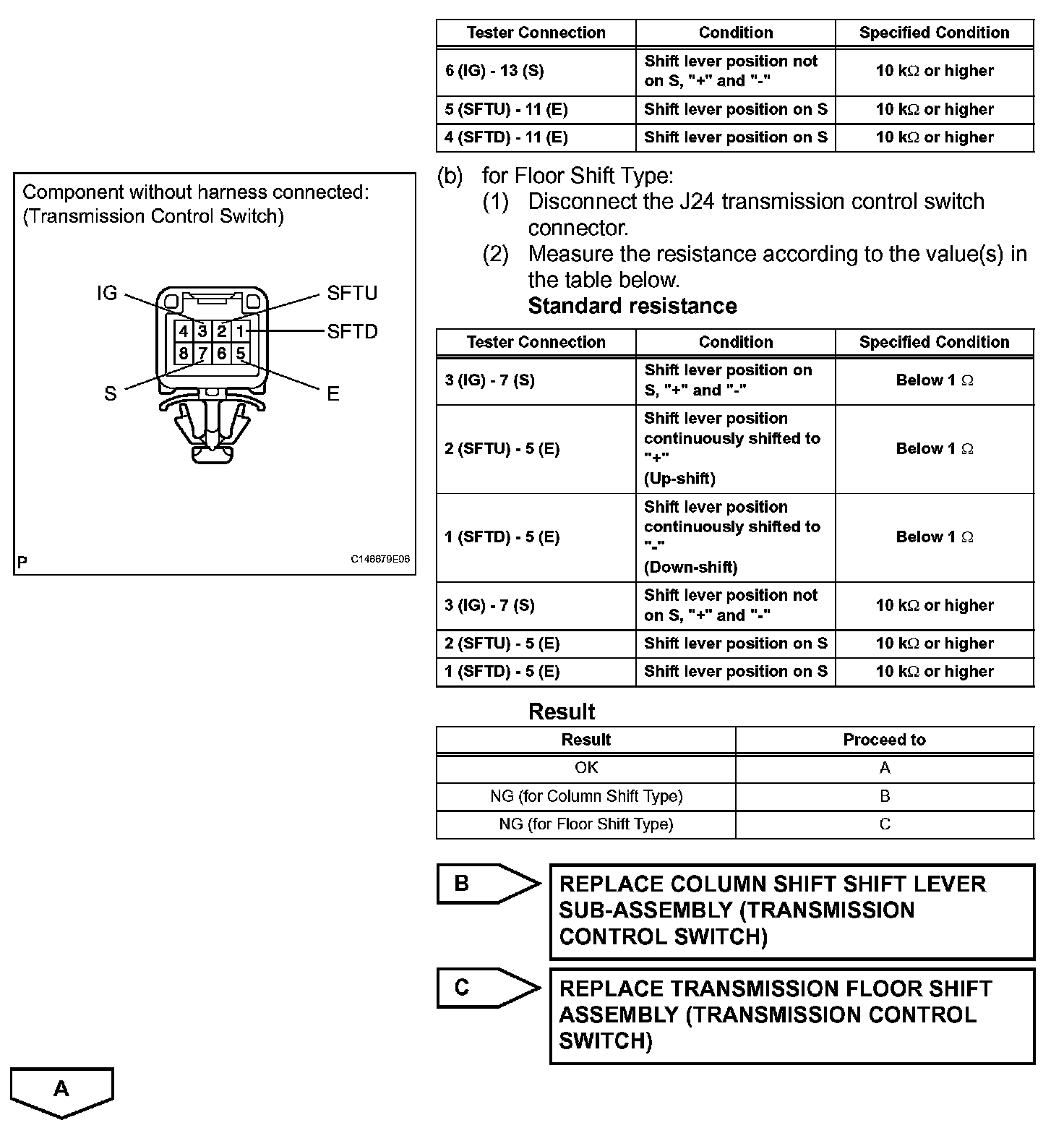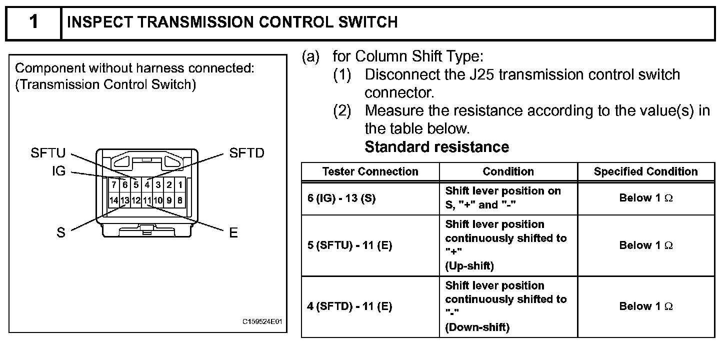 When moving the shift lever into the S position using the transmission control switch, it is possible to switch the shift range position between "1" (1st range) and "5" (5th range). Shifting to "+" once raises the shift range position by one, and shifting to "-" lowers the shift range position by one.