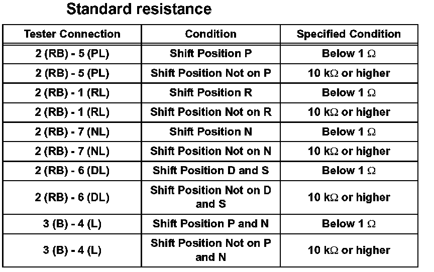 5. INSPECT PARK/NEUTRAL POSITION SWITCH ASSEMBLY