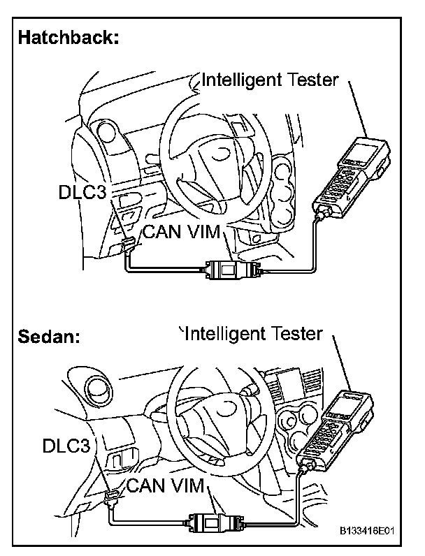 DTC CHECKa. Connect the intelligent tester with CAN VIM to the DLC3.