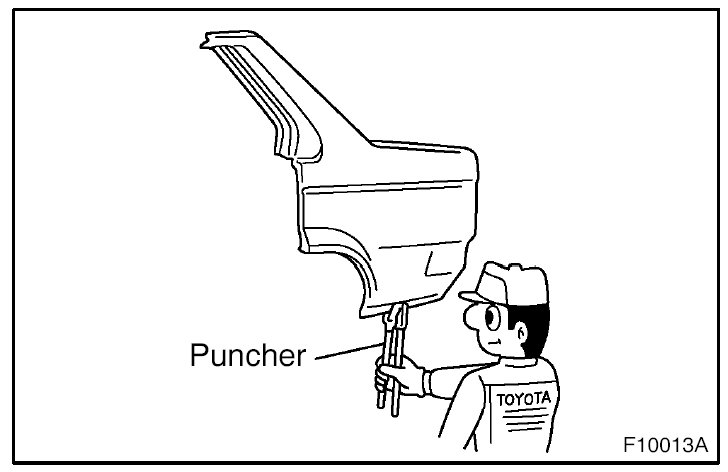 1. For areas where a spot welder cannot be used, use a puncher or drill to make holes for plug welding.