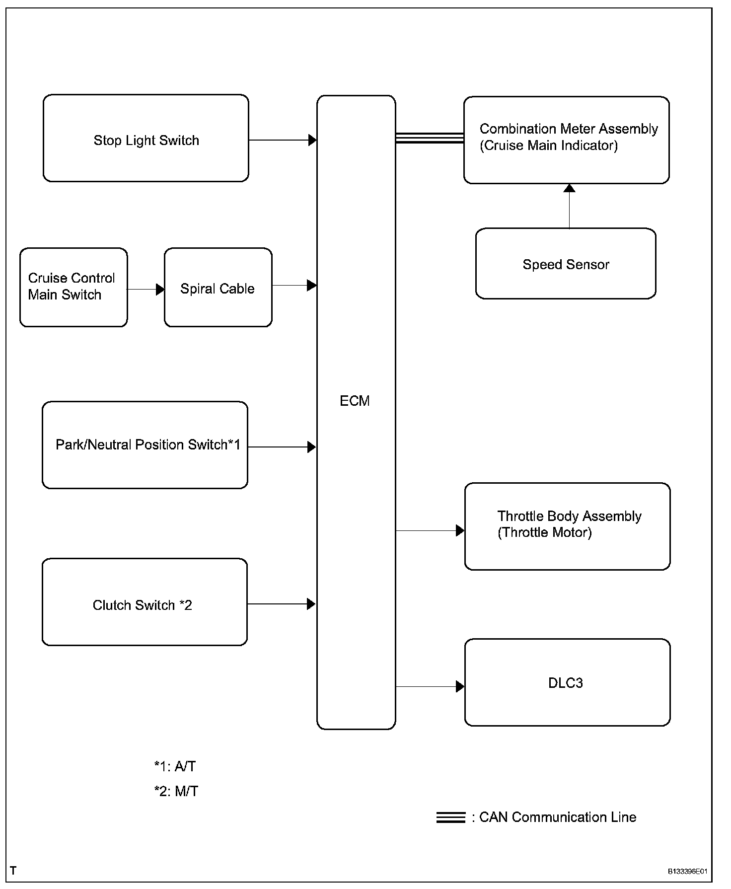 The cruise control system makes it possible to drive at a desired speed without using the accelerator pedal.The ECM controls the throttle opening angle based on signals from switches and sensors.