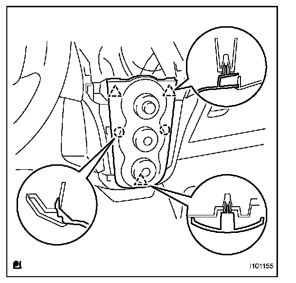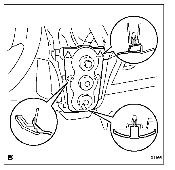 a. Disengage the 2 claws and 4 clips and remove the instrument cluster finish panel center.