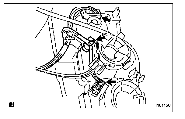 b. Disengage the 2 claws and disconnect the air mix damper control cable.