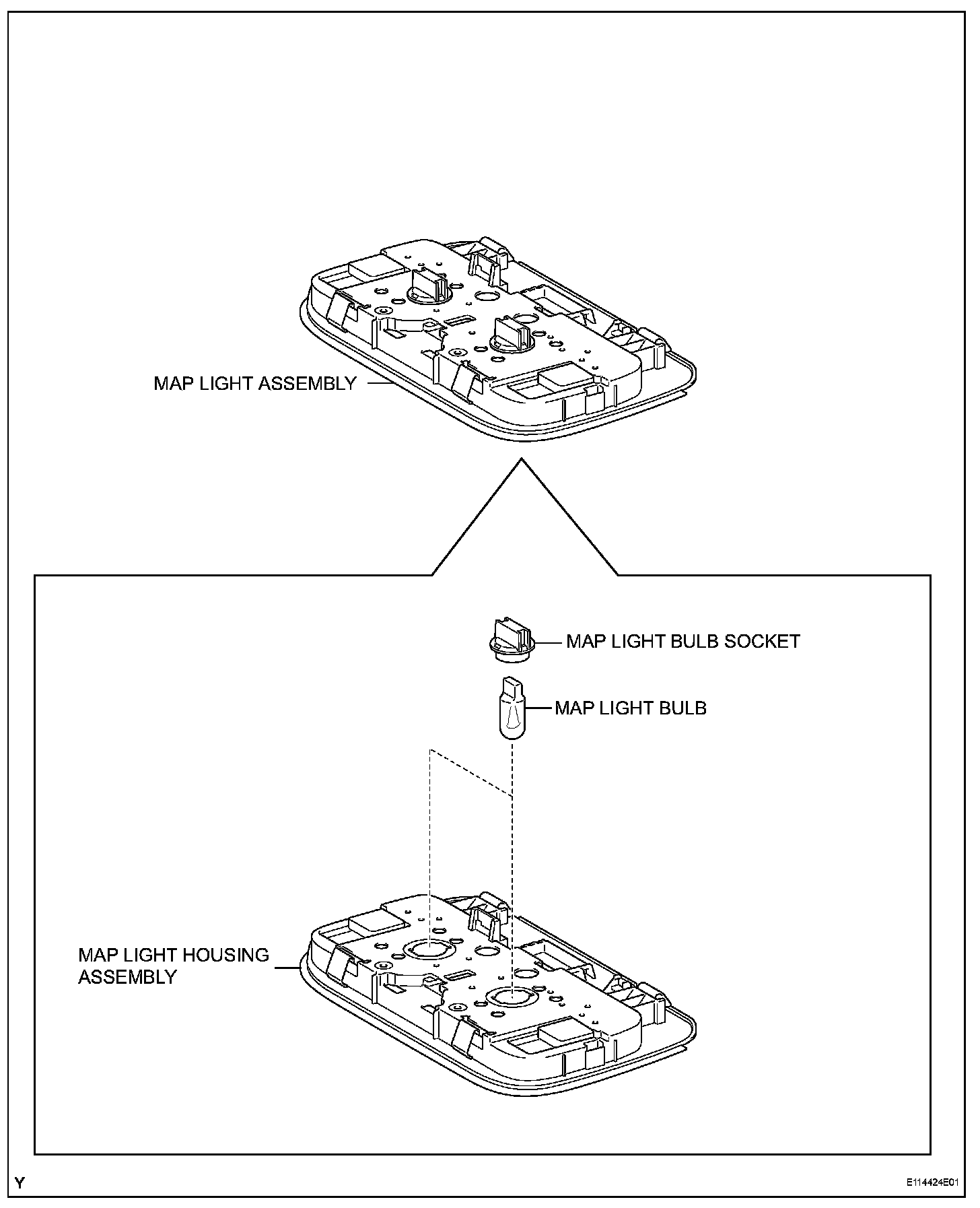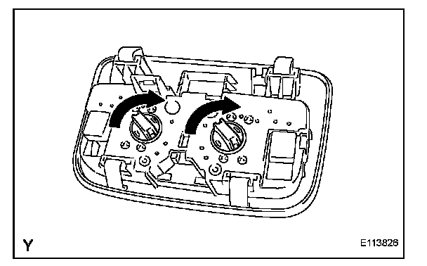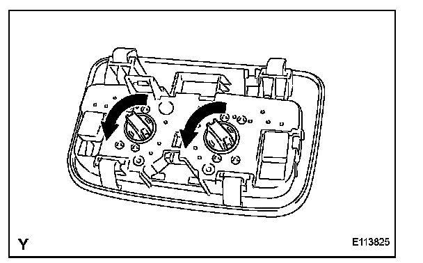 b. Turn the map light bulb socket and bulb, in the direction indicated by the arrows in the illustration.