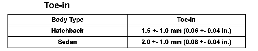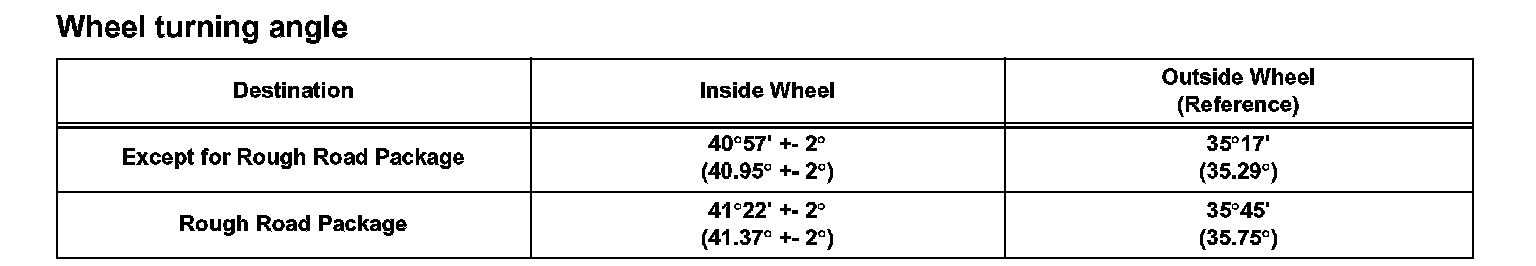 ^ The tolerance for the difference between the left and right wheels is 30' (0.5°) or less for both the camber and caster.
