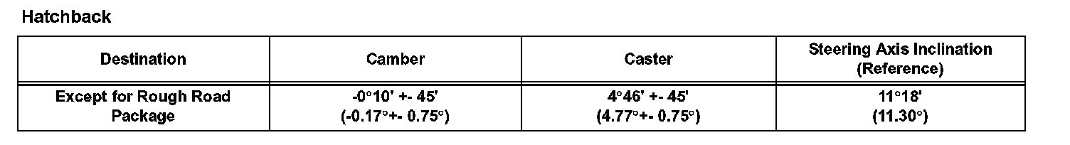 Camber, caster and steering axis inclination: Hatchback (Part 1):