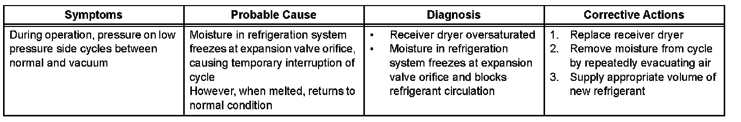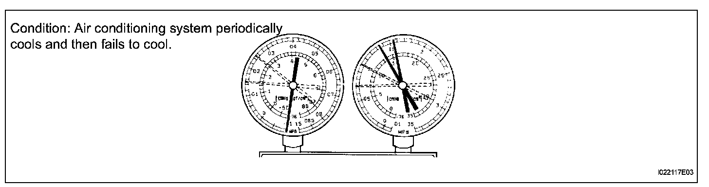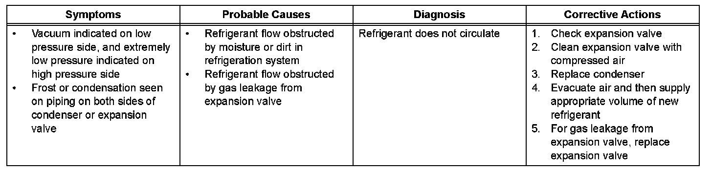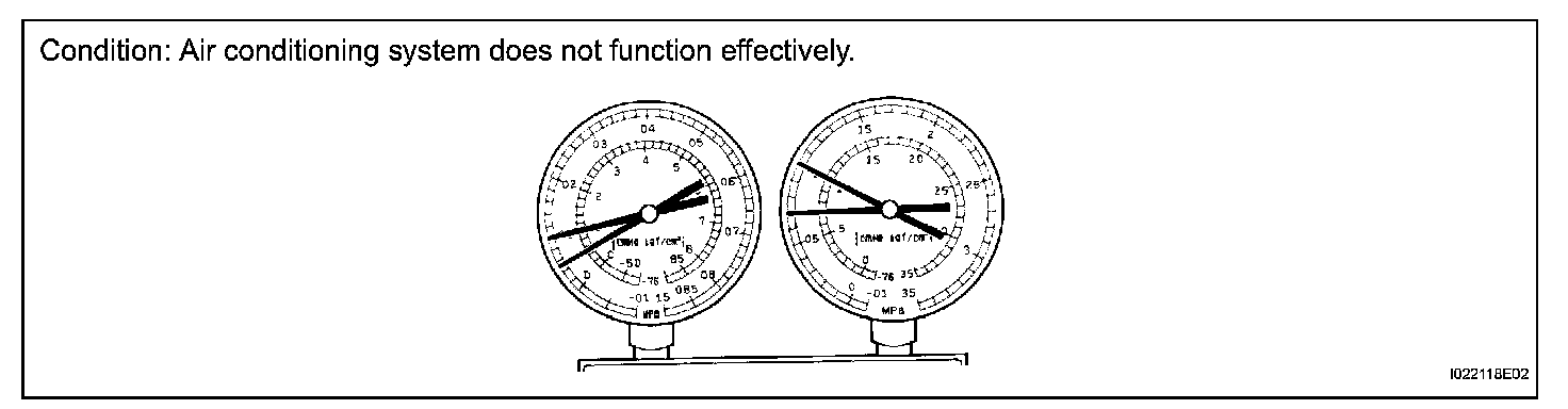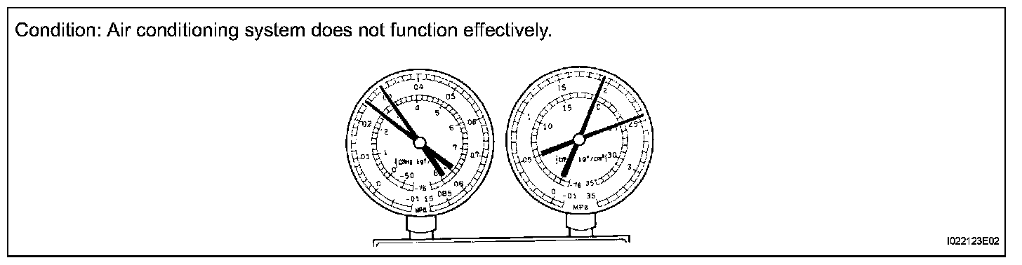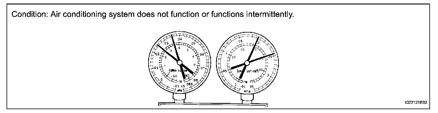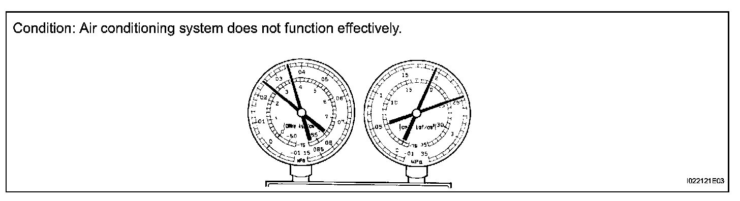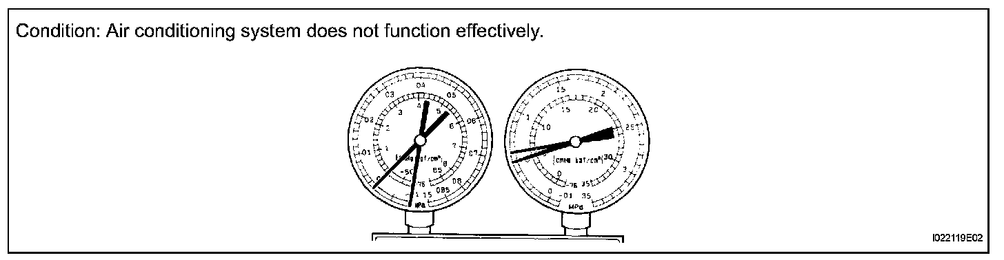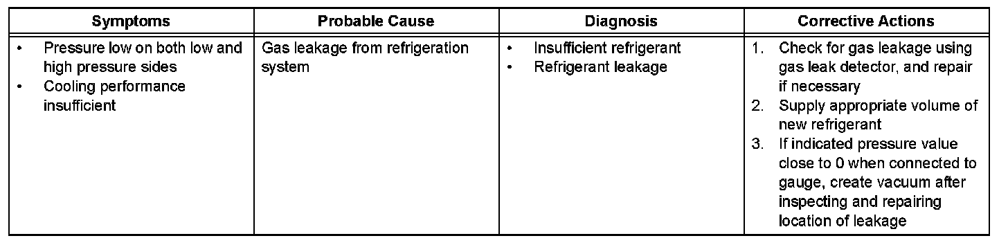 a. This is a method to identify trouble areas by using a manifold gauge set. Read the manifold gauge pressure under the following conditions.