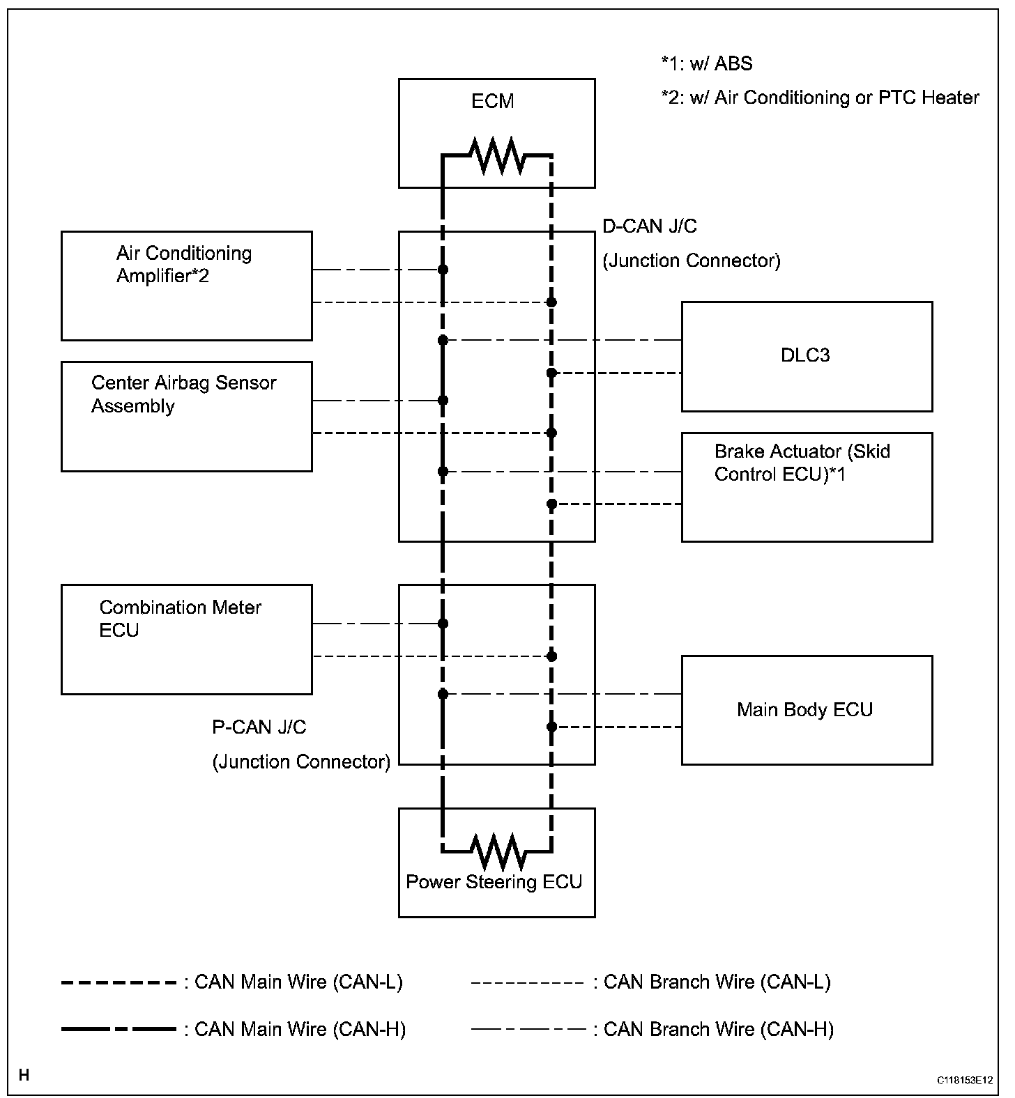 HINT: The power steering ECU and center airbag sensor assembly use the CAN communication system to perform DTC communication instead of the conventional communication line (SIL).