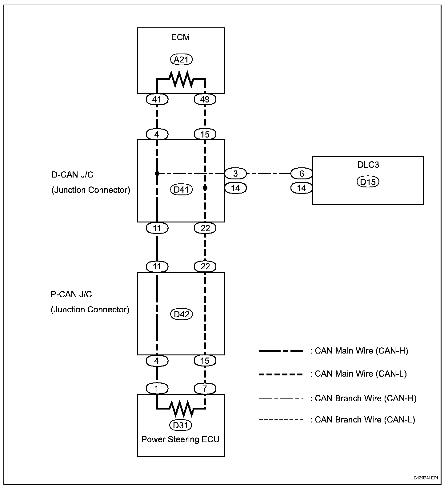 - Turn the ignition switch OFF before measuring the resistances of the CAN main wire and the CAN branch wire.