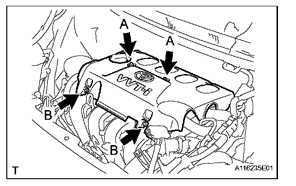 a. Remove the 4 nuts and cylinder head cover No. 2.