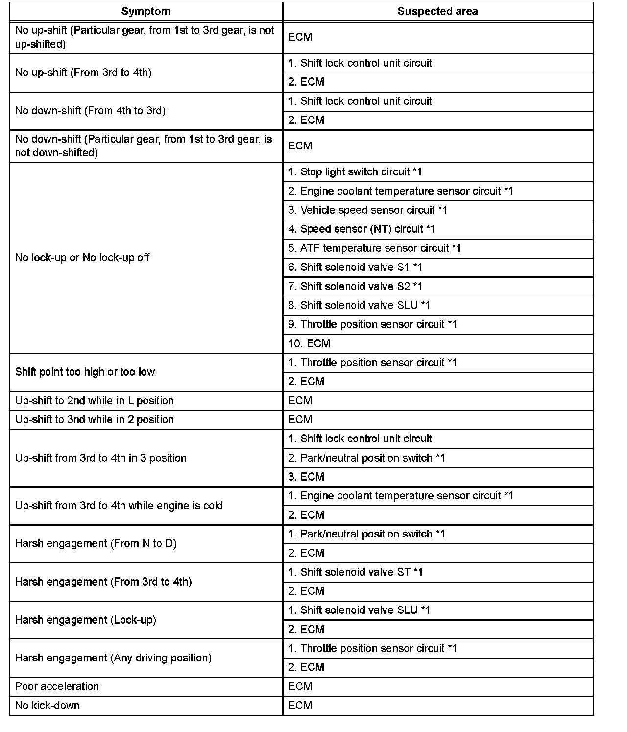 ^ When the circuit on which *1 is attached malfunctions, a DTC could be output.