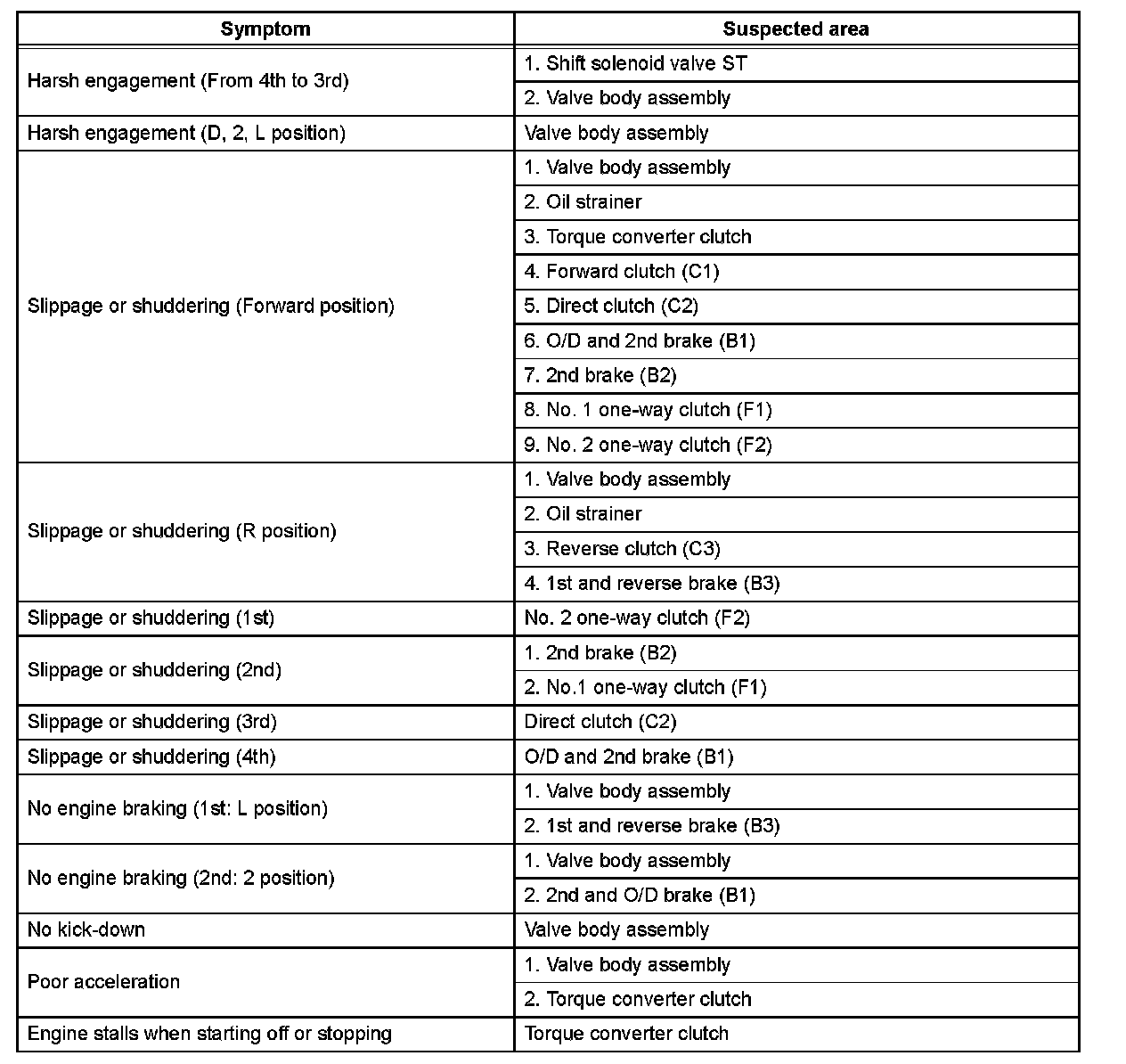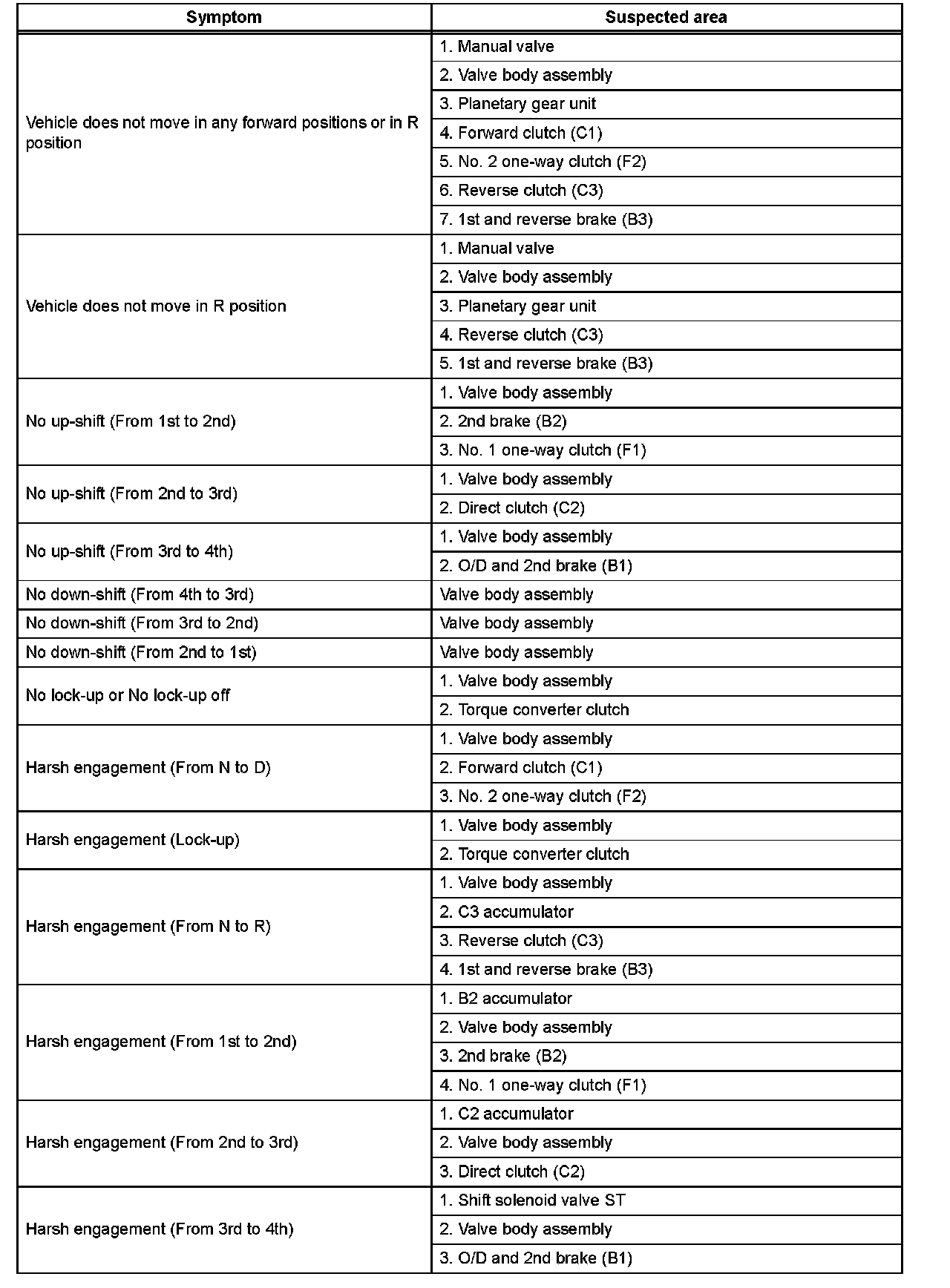 ^ If a normal code is displayed during the DTC check although the trouble still occurs, check the electrical circuits for each symptom in the order given in the following charts and proceed to the page given for troubleshooting.