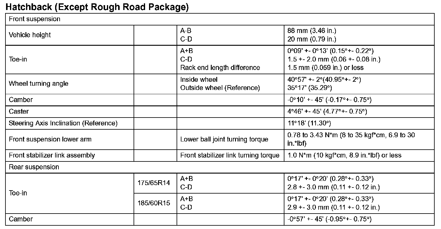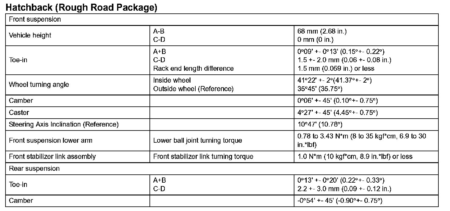 Suspension Service Data (Hatchback - With Rough Road Package):