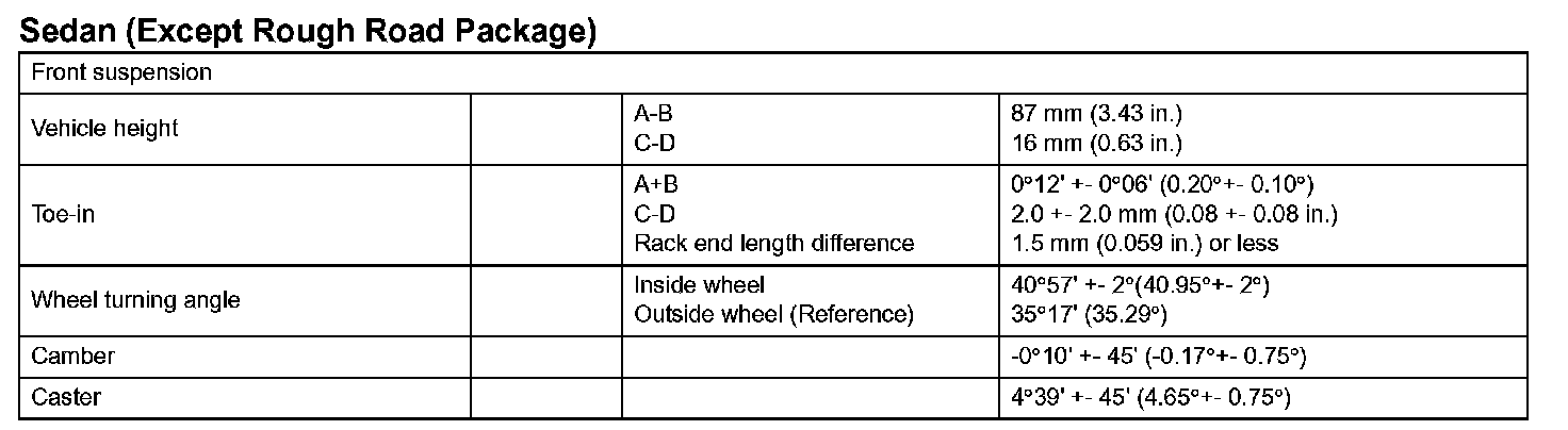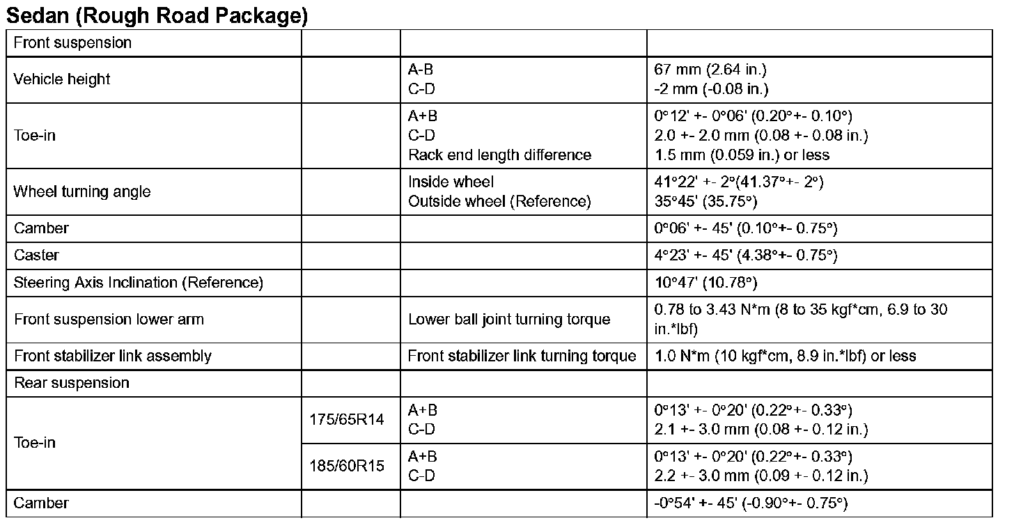 Suspension Service Data (Sedan - With Rough Road Package):