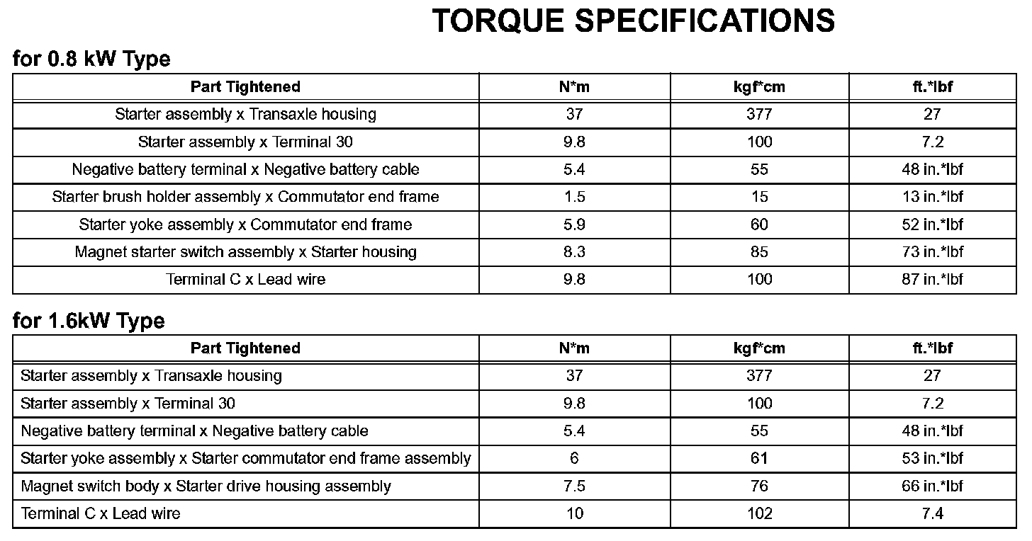 Starting - Torque Specifications: