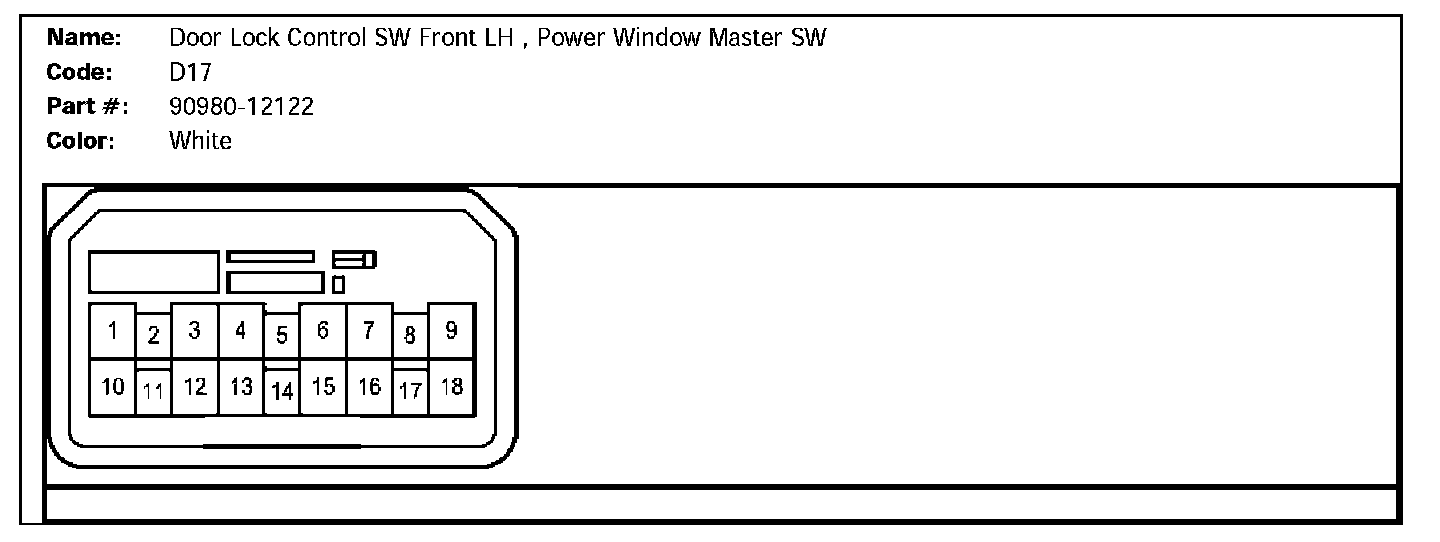 D17 (Door Lock Control SW Front LH, Power Window Master SW):
