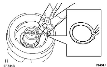 (e) Using a snap ring expander, remove the snap ring and the magnetic clutch starter.