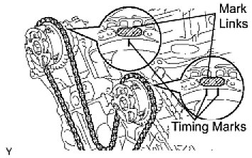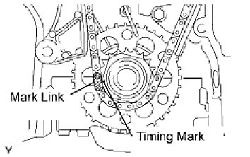 (b) Align the mark link (yellow) with the timing mark of the crankshaft timing gear.