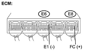 (b) Measure the voltage between the terminals of the E6 and E8 ECM connectors.