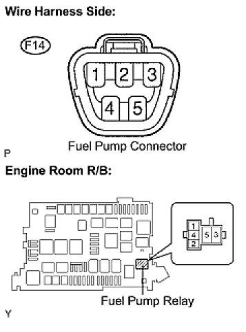 (2) Remove the Fuel pump relay from the engine room R/B.