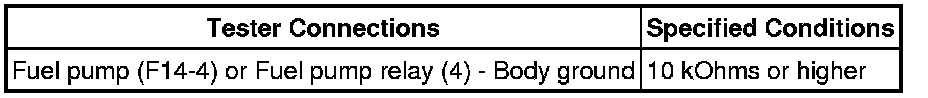 (2) Measure the resistance between the terminal of the fuel pump connector and body ground.