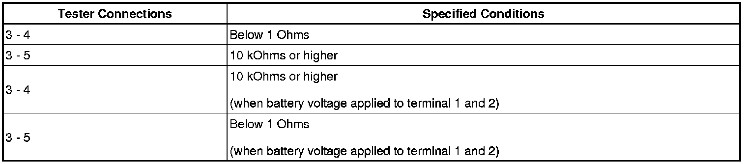 (1) Apply battery voltage to both terminals. Check that the fuel pump operates.