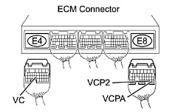 When the VC circuit is short-circuited, the microprocessor in the ECM and sensors that are supplied power through the VC circuit are inactivated because the power is not supplied from the VC circuit. Under this condition, the system does not start up and the MIL does not illuminate even if the system malfunctions.