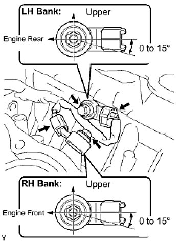(a) Install the 2 knock sensors with the 2 bolts as shown in the illustration.