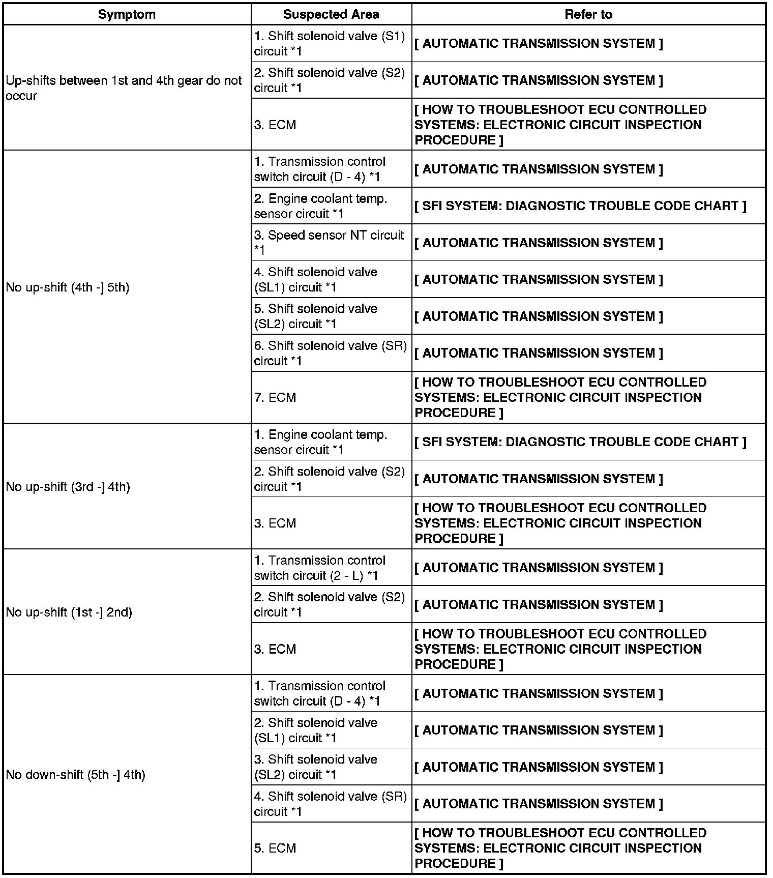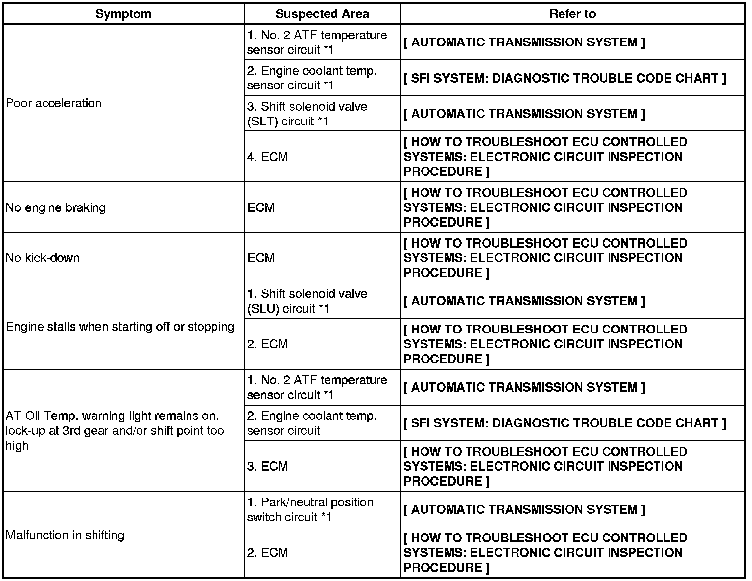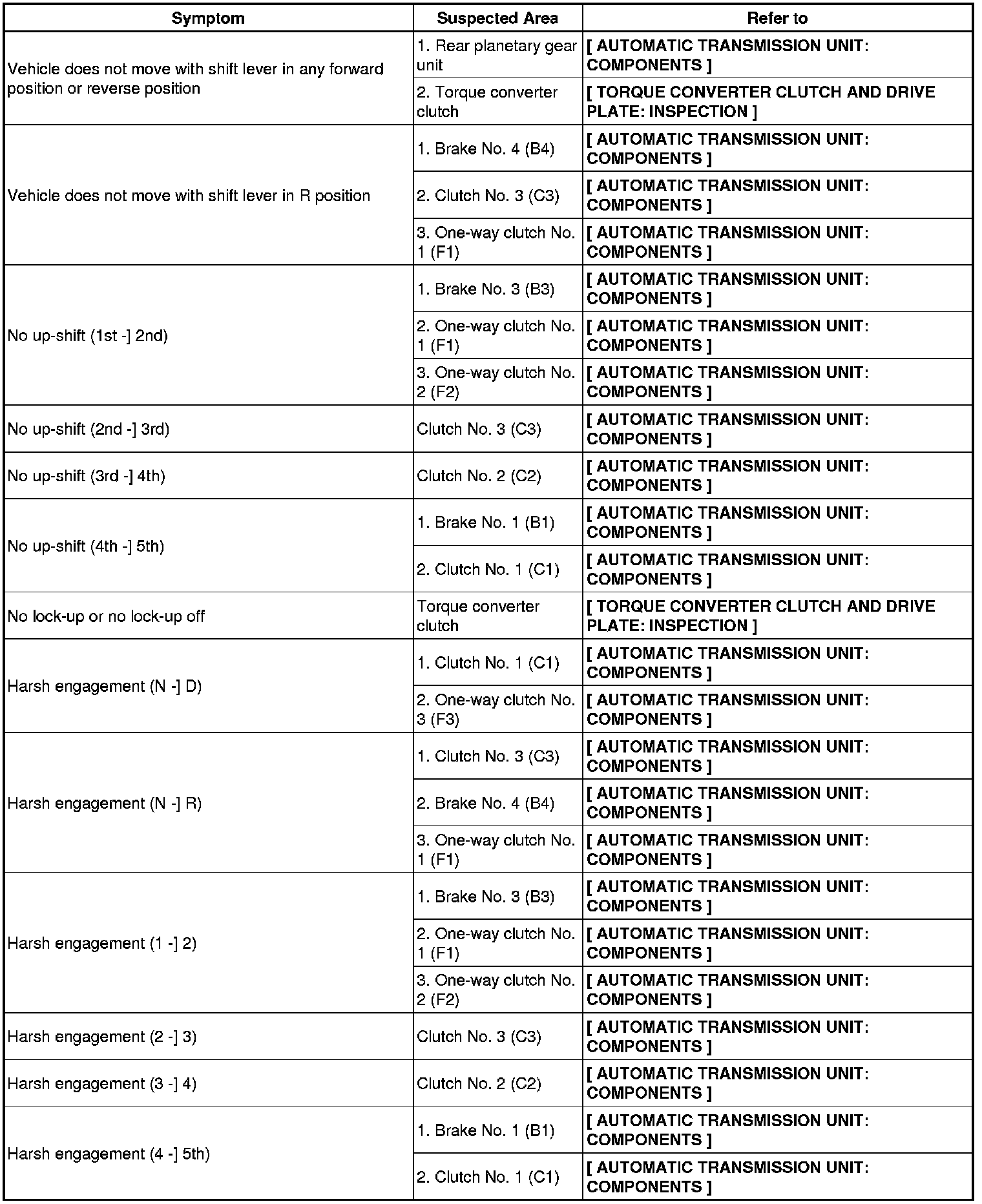 AUTOMATIC TRANSMISSION SYSTEM: PROBLEM SYMPTOMS TABLE