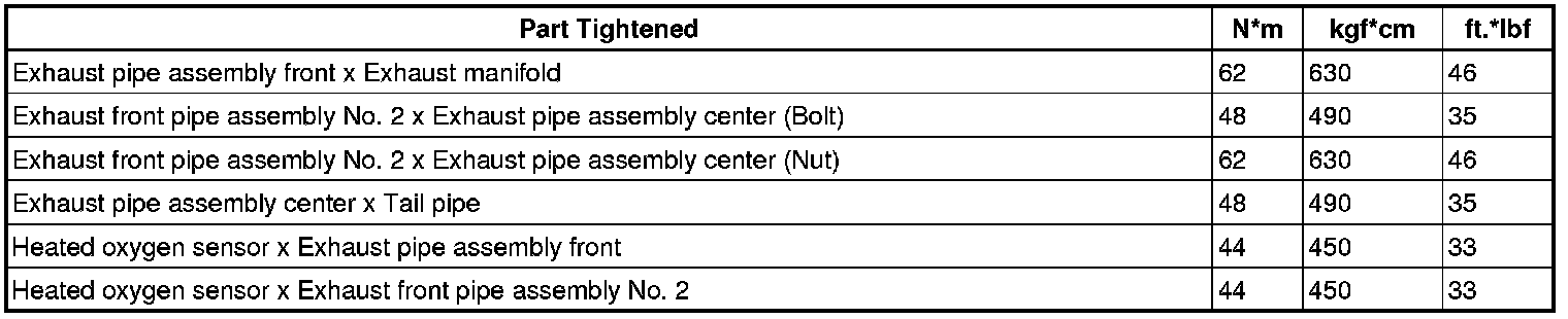 SERVICE SPECIFICATIONS: 1GR-FE EXHAUST: TORQUE SPECIFICATIONS
