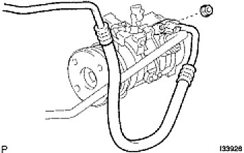 (d) Install the suction hose sub-assembly on the compressor and magnetic clutch with the nut.