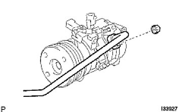 (d) Install the discharge hose sub-assembly on the compressor and magnetic clutch with the nut.