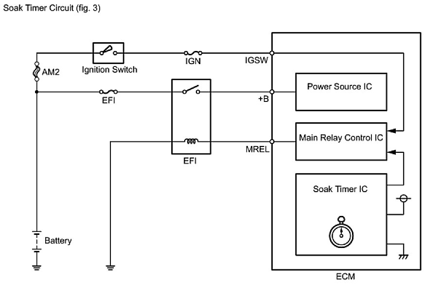 HINT: *: If the engine coolant temperature is not below 35°C after 5 hours after the ignition switch is turned off, the monitor check starts 2 hours later. If it is still not below 35°C 7 hours after the ignition switch is turned off, the monitor check starts 2.5 hours later.