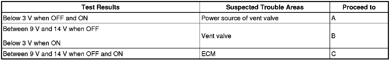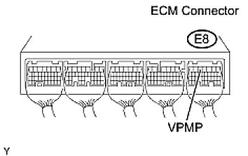 (c) Measure the voltage between terminal VPMP of the ECM connector and the body ground when the vent valve is turned ON (close) and OFF (vent) using the tester.