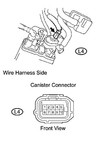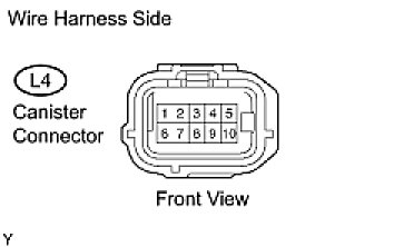 (f) Measure the voltage between terminal 1 of the canister connector and the body ground.