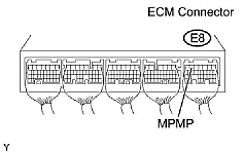 (b) Measure the voltage between MPMP terminal of the ECM connector and the body ground when the leak detection pump is turned ON and OFF using the tester.